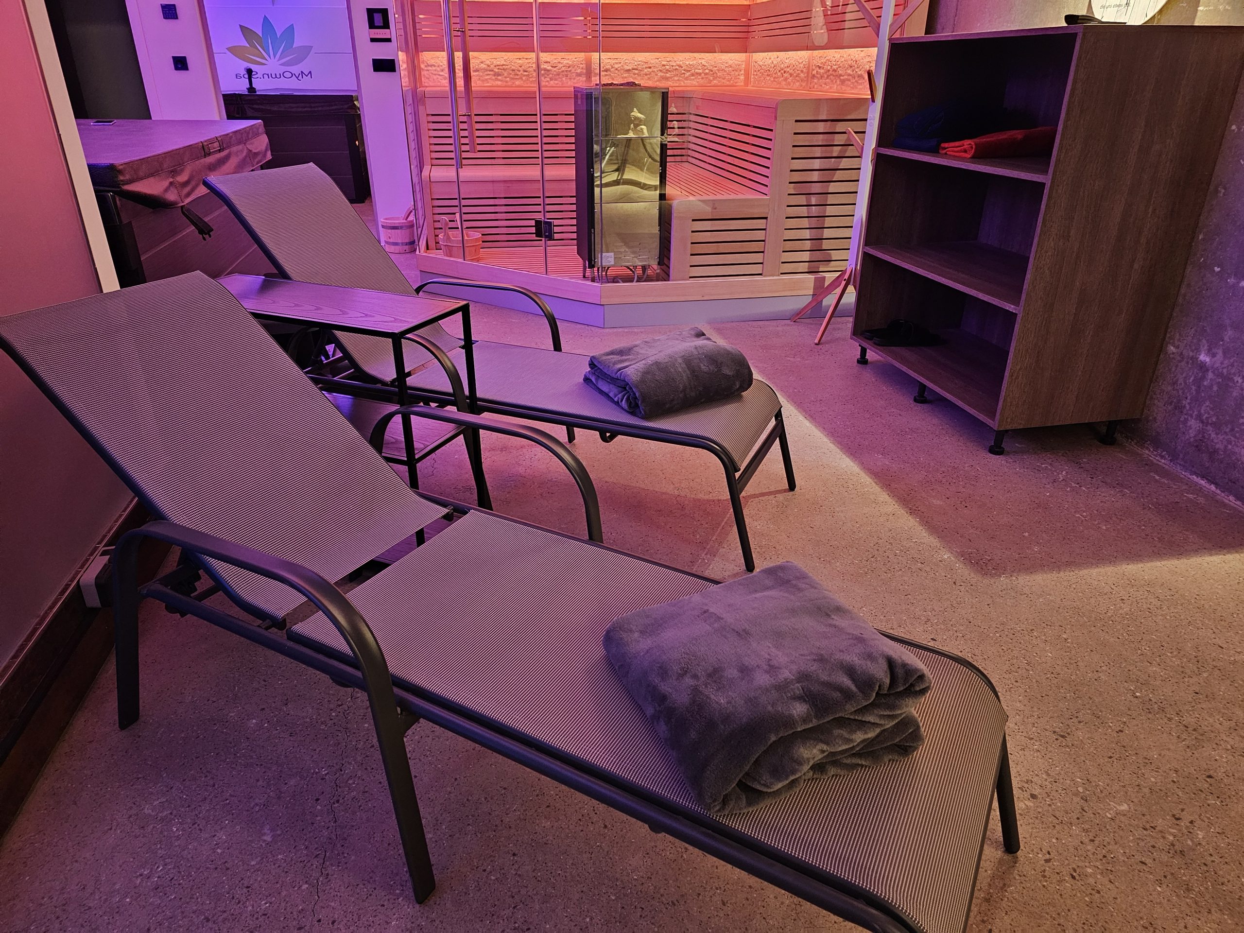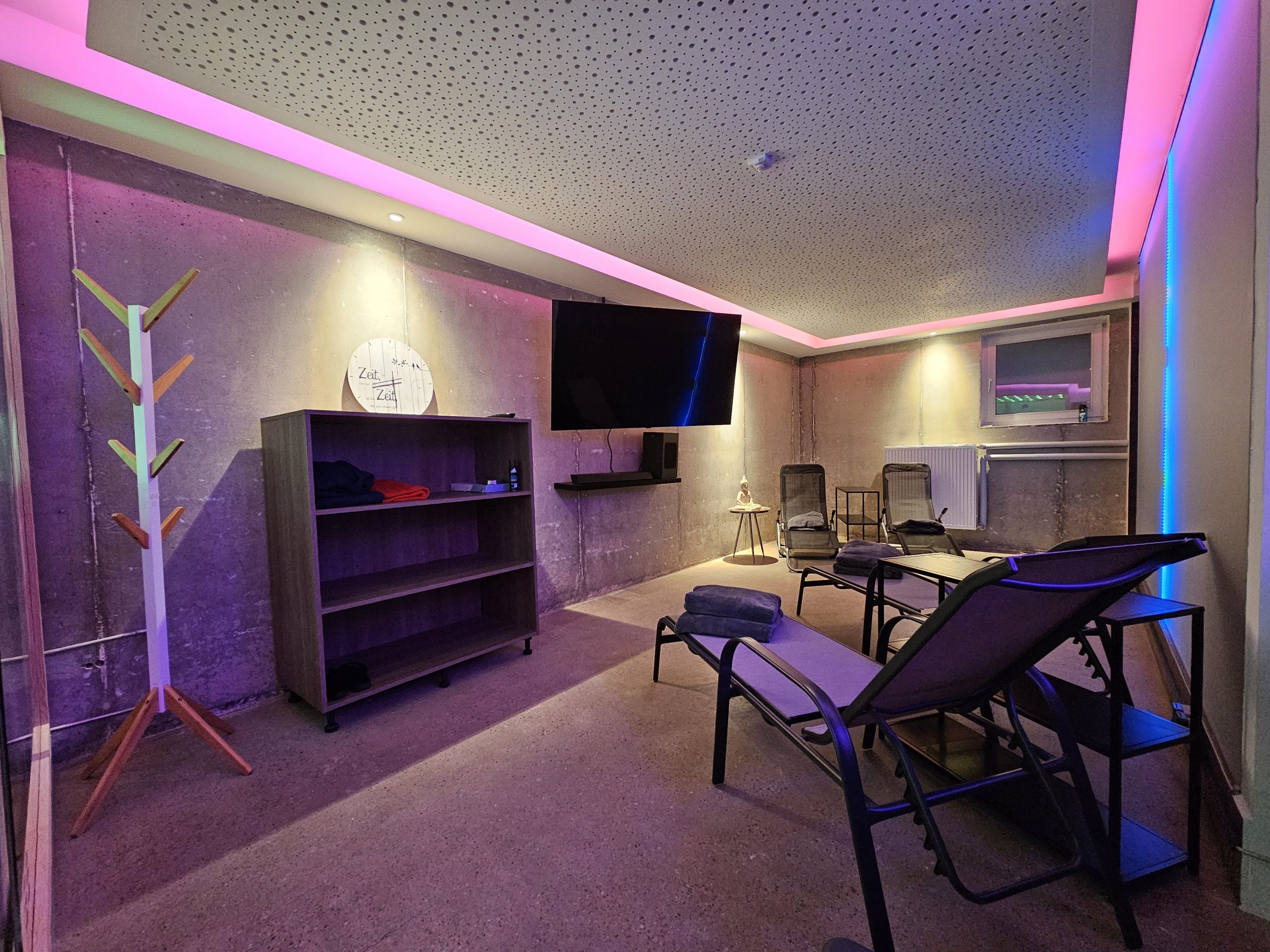 Entdecken Sie die Essenz purer Entspannung in unserem exklusiven Spa-Bereich. Hier bieten wir Ihnen einen privaten Rückzugsort, an dem Sie sich von der Hektik des Alltags lösen und in eine Welt des Friedens und der Ruhe eintauchen können. In diesem persönlichen Erholungsraum verstummt die Außenwelt, und Sie finden sich in einer Atmosphäre wieder, die perfekt auf Ihre Bedürfnisse nach Ruhe und Gelassenheit abgestimmt ist. Genießen Sie die Freiheit, sich in absoluter Privatsphäre zu entspannen, und lassen Sie sich von der harmonischen Umgebung inspirieren, die Ihren Geist beruhigt und Ihre Seele belebt. MyOwnSpa ist Ihr persönlicher Ort der Ruhe – ein Paradies, in dem Sie sich vollkommen fallenlassen und regenerieren können.
